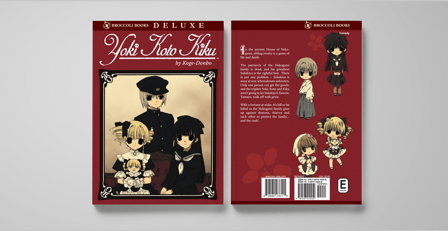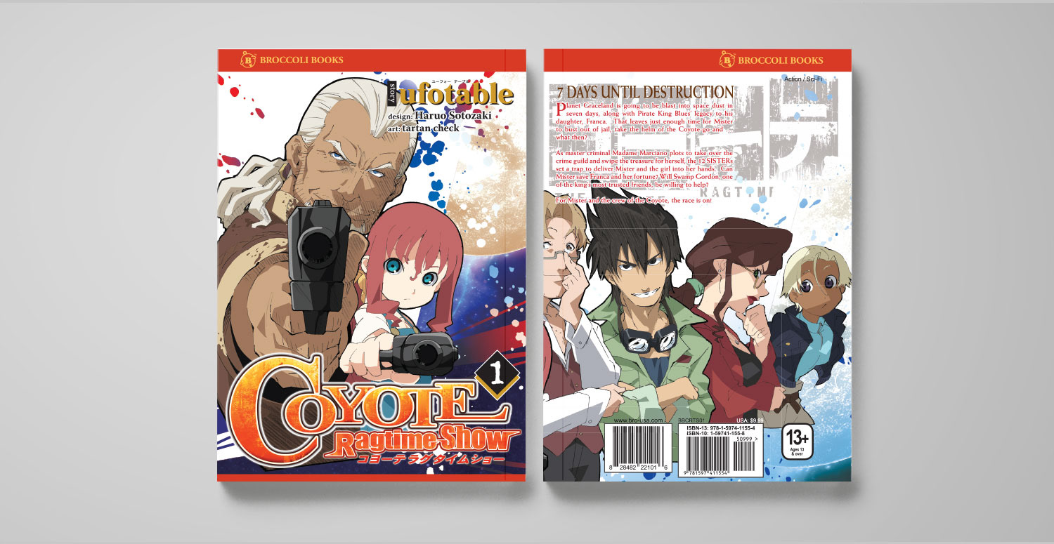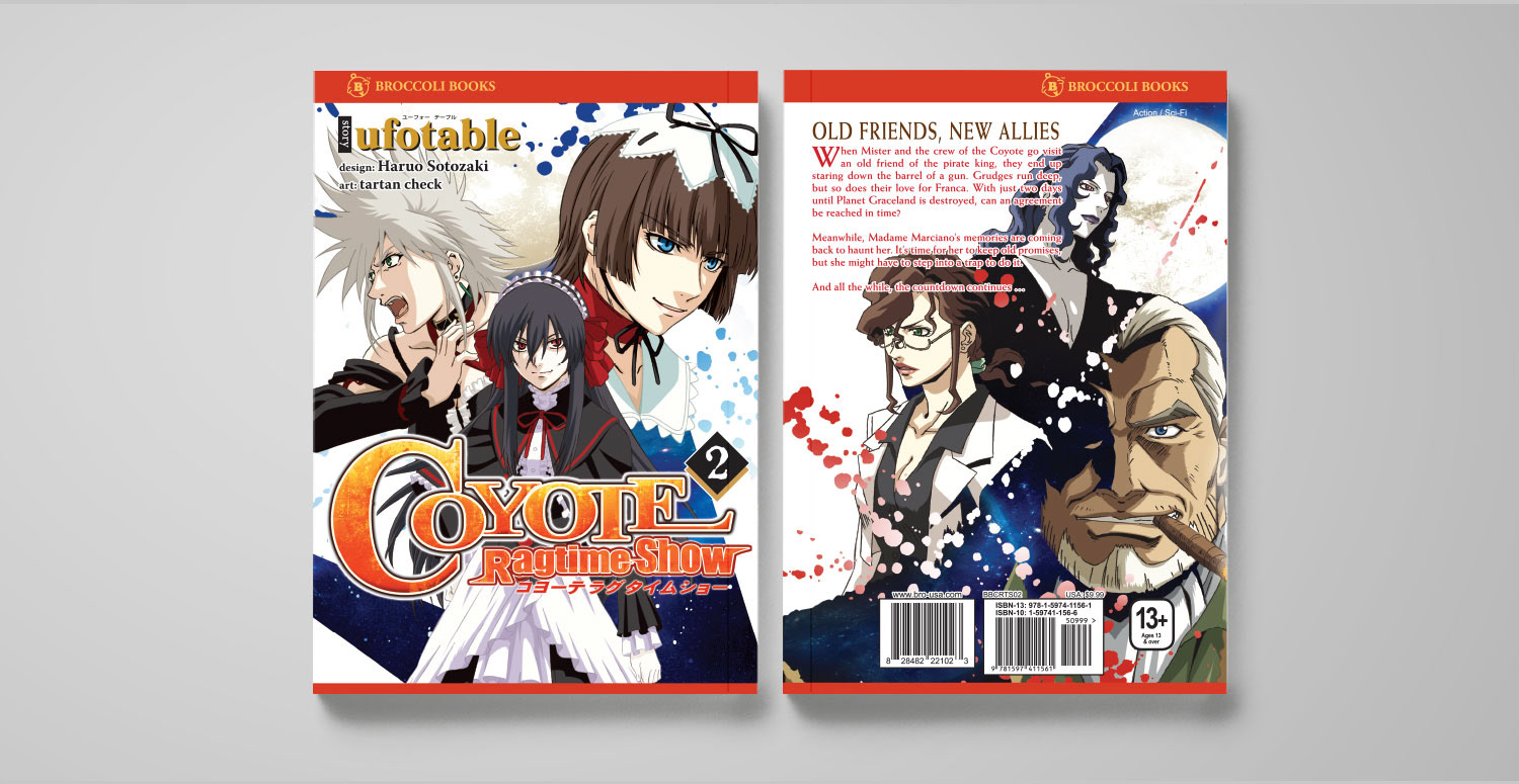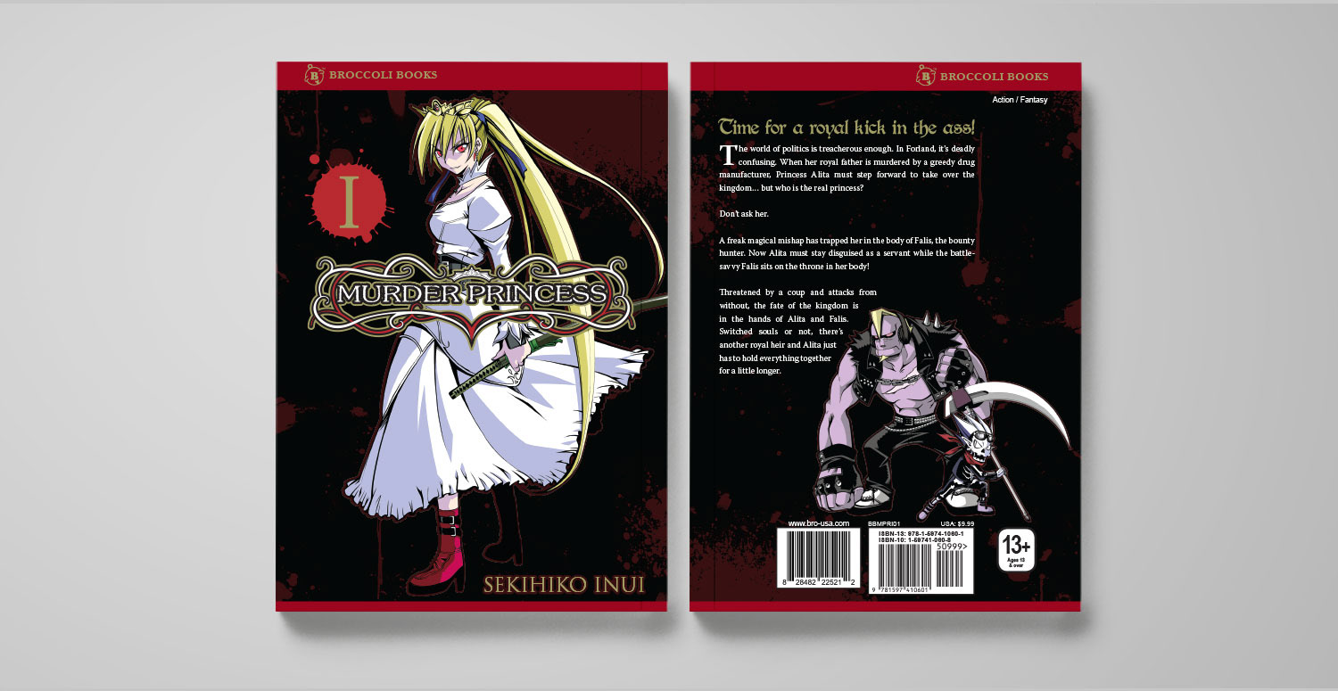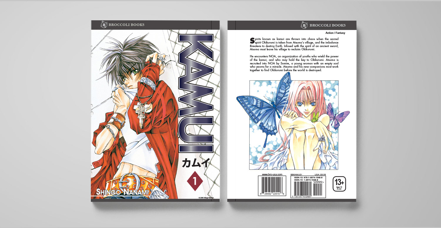 I oversaw a lot of the graphic design and production for the Broccoli Books line of manga and artbooks. I would adapt the covers for US audiences, often designing new logos and laying out English text, as well as adding our imprint color strip and logo. For the interiors, I often designed newly added extras. I also oversaw the artwork that our retouchers would turn in.