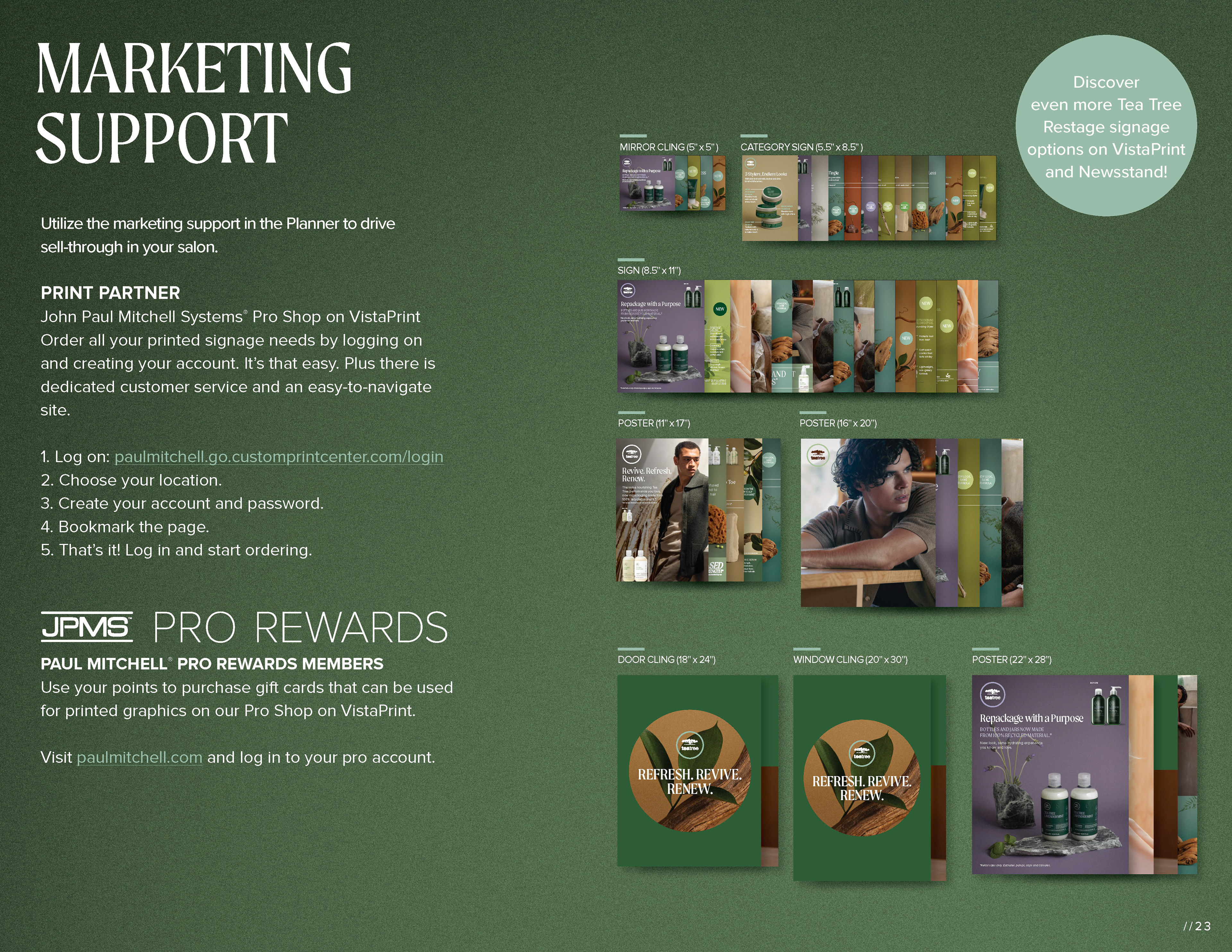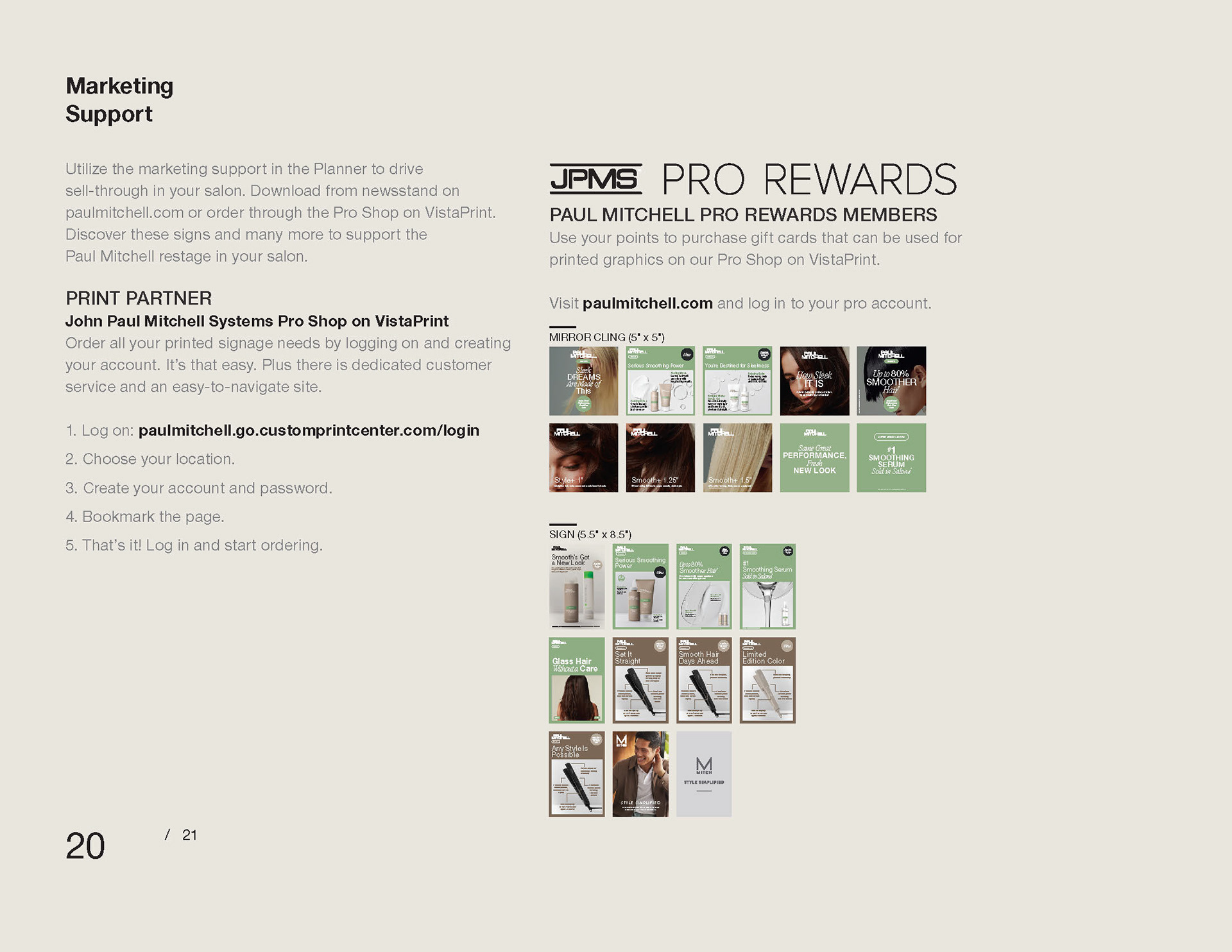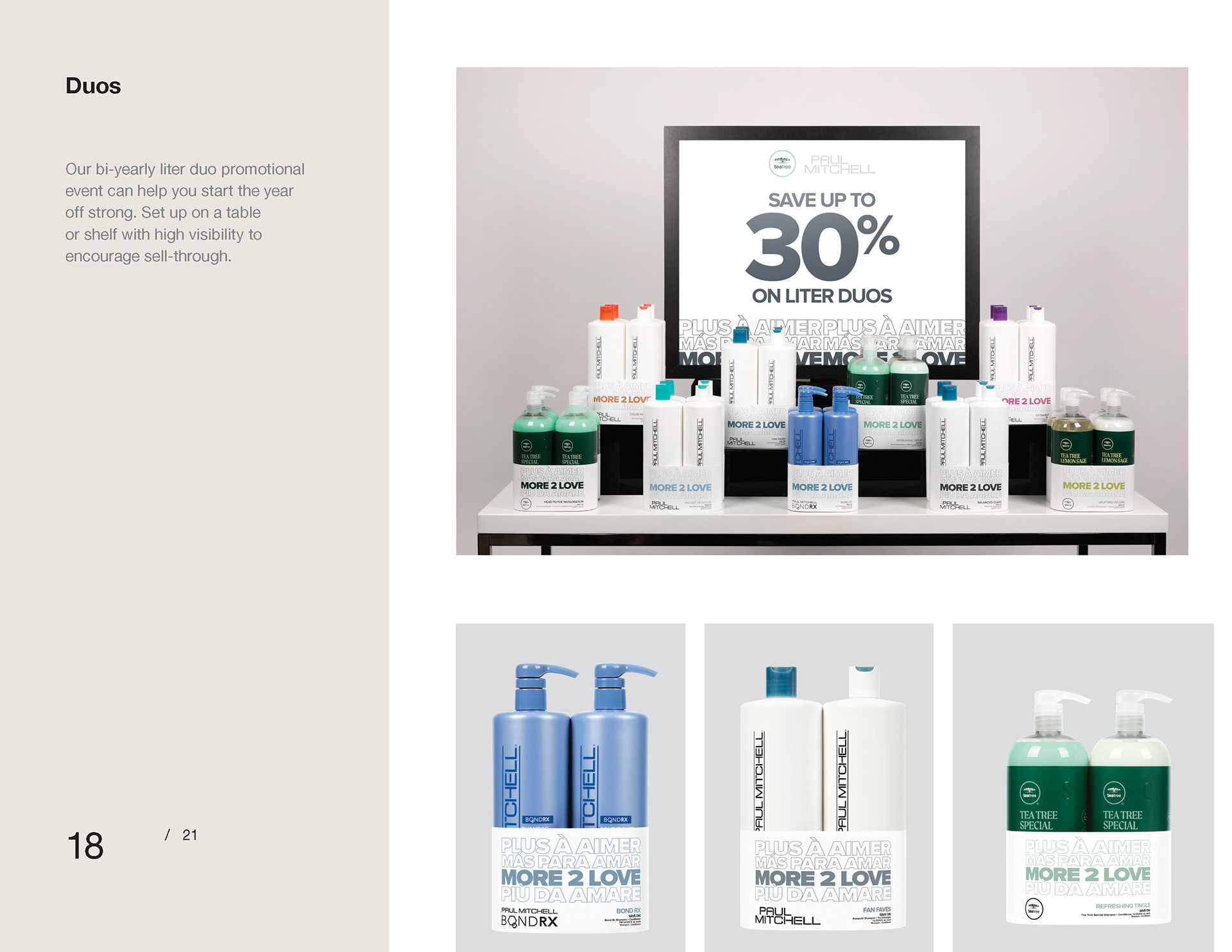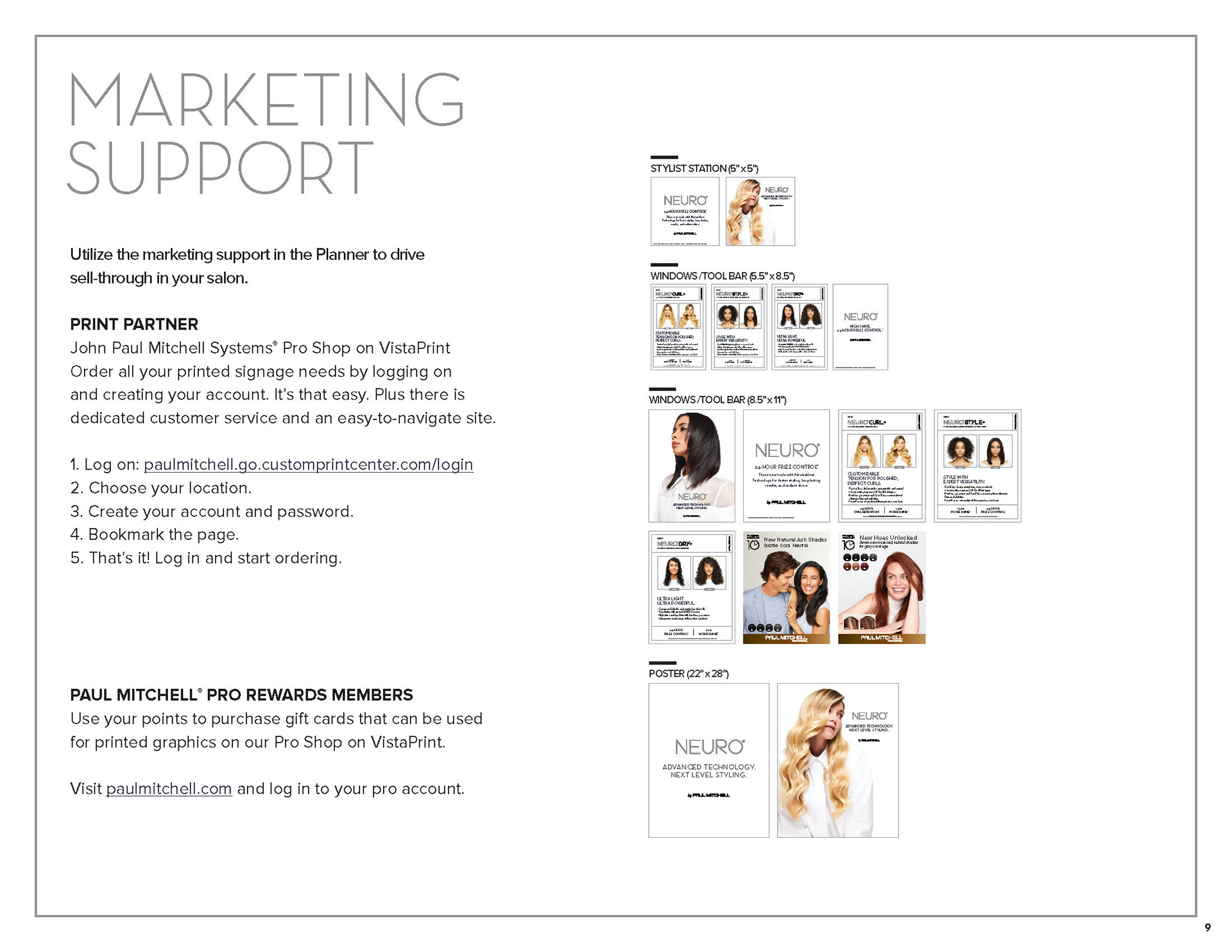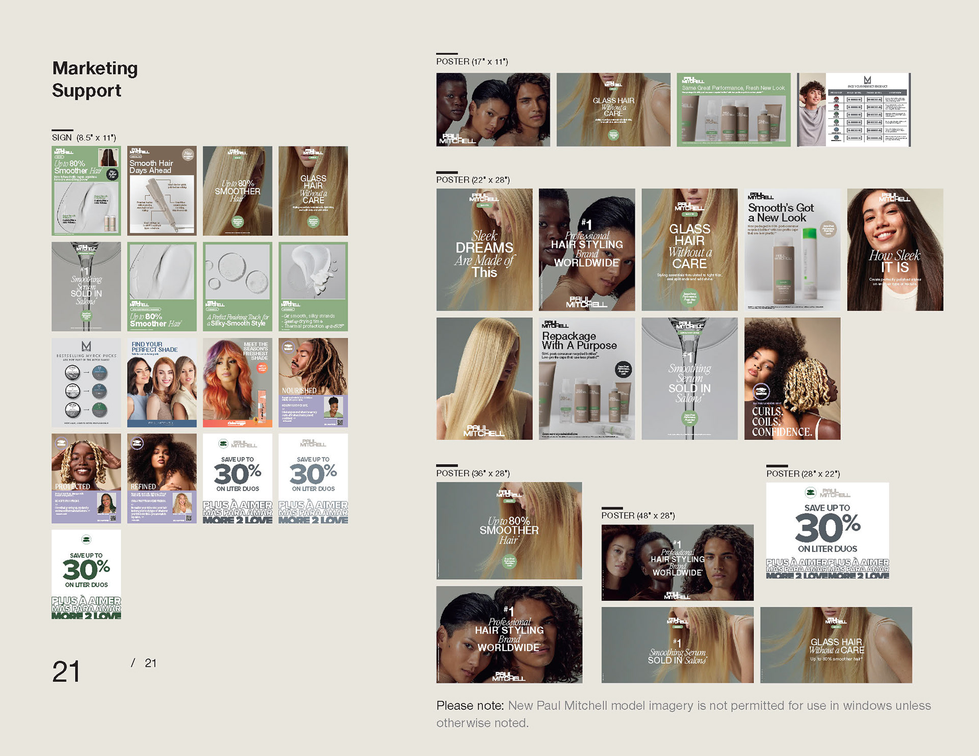 "The Planner" is a quarterly brochure given to salons and vendors to show them how to merchandise and display the newest JPMS product releases. All of the POPs featured in the examples are included with the brochure. For each Planner I was usually given some art direction by the merchandising department, but otherwise I would have free reign to design while making sure I kept on brand. I would also collaborate with Jennifer Zappia, the production manager, when the project featured multiple product focused planners.