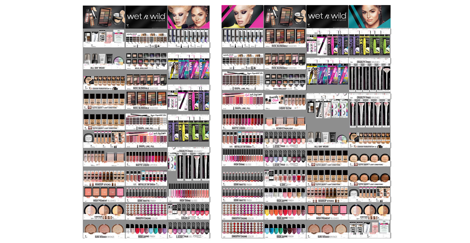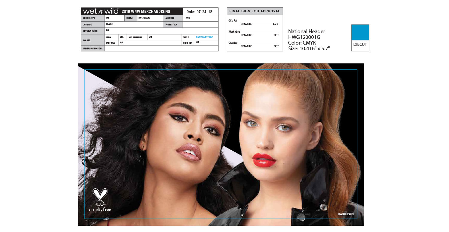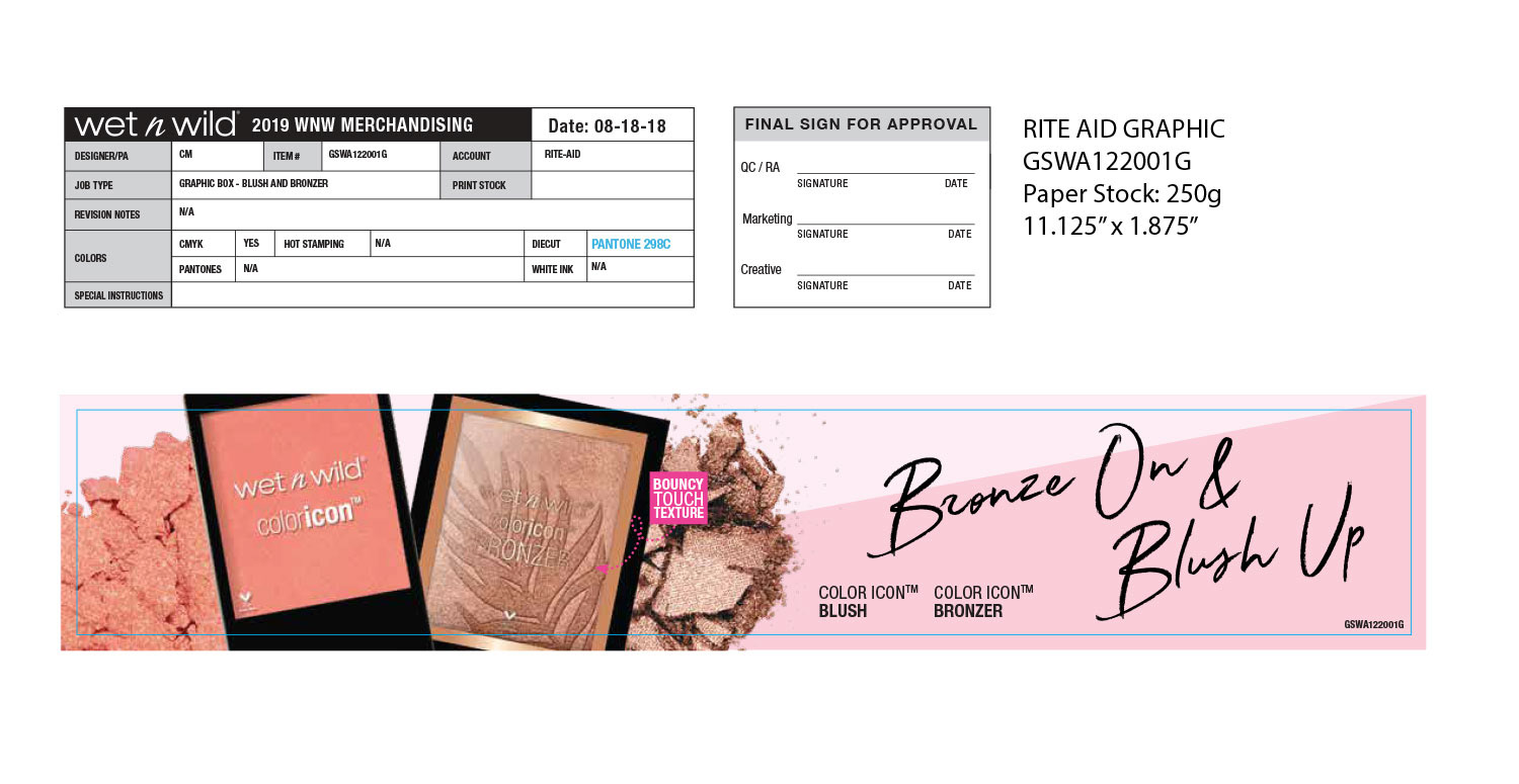 I was known as the "merchandising guy" at wet n' wild, and had a hand in wall resets for many clients including Ulta, Target, CVS, Rite-Aid, Walmart, and Walgreens. Strips, headers, side panels, sign graphics. You name it and I've done it. Of course I've collaborated with the art directors and other production artists, but a lot of them came and went while I stayed and knew the ins and outs.